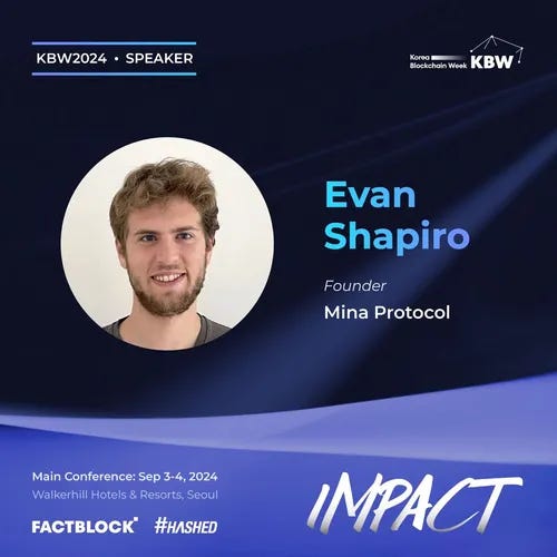 Evan Shapiro, co-founder of Mina Protocol, will discuss how Mina Protocol enables reusable proofs for verifiable, accessible, and private data, contributing to a more trustworthy digital world. Don't miss this insightful session at Korea Blockchain Week 2024.