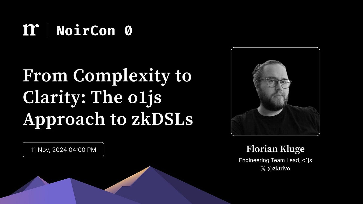 Florian Kluge, Engineering Team Lead at o(1) Labs, will speak at NoirCon 0 on November 11, 2024. His session, "From Complexity to Clarity: The o1js Approach to zkDSLs," will cover what makes o1js unique, the future of programmable cryptography, and real-world applications.