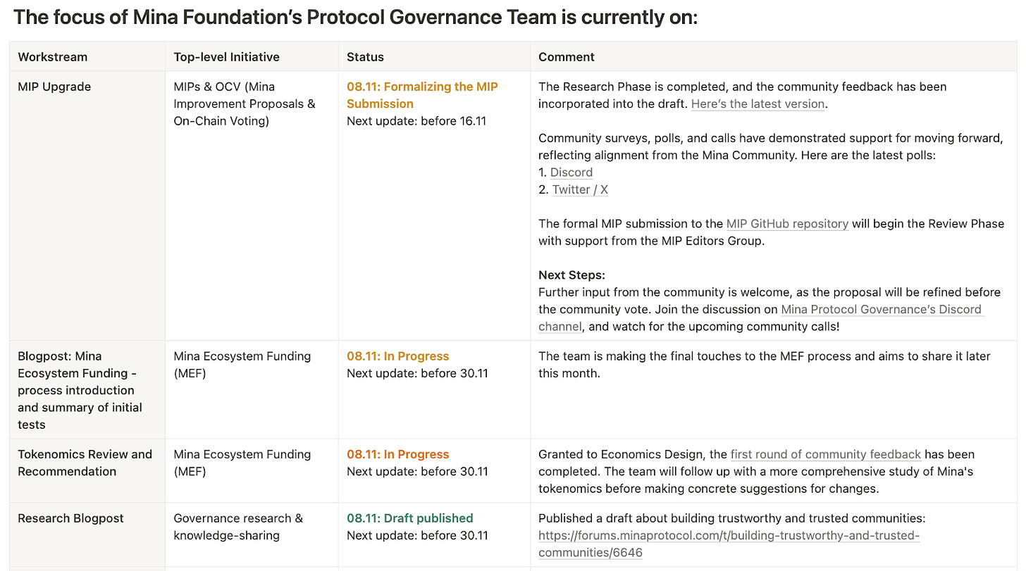 Philipp from Mina Foundation shared updates from the latest Core Grants community call. Here's a summary:
