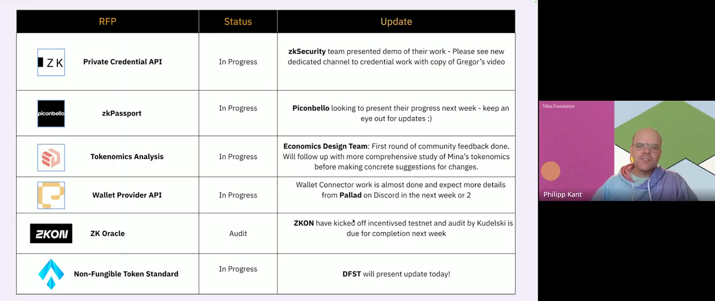 Private Credential Standard: zkSecurity team showcased their work, and discussions continue on the #credentials-and-id-builders Mina Discord channel.