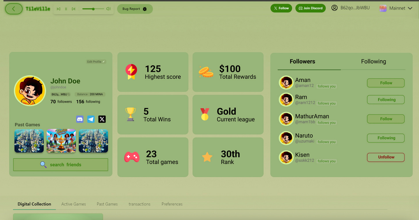 TileVille has shared a preview of its upcoming user profile design. The new interface introduces features like the ability to follow/unfollow players, view high scores and achievements, track rewards, ranks, and leagues, and explore other users’ profiles in real time.